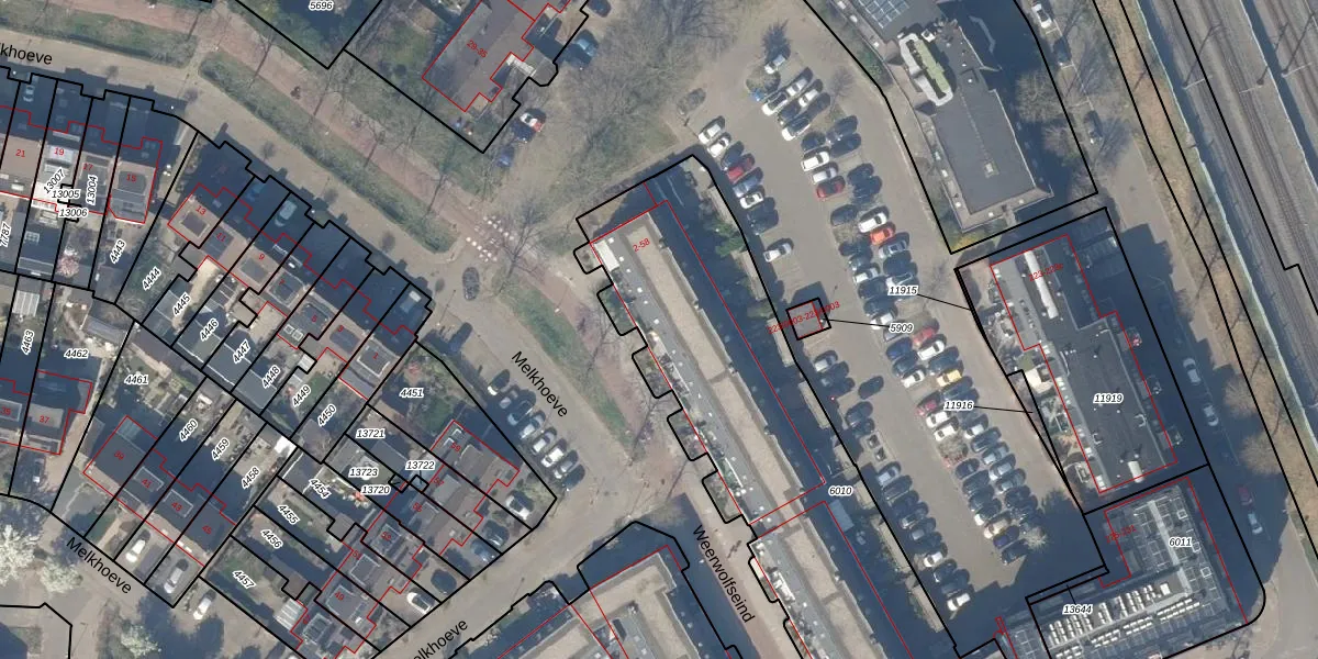 Het perceel waarop Weerwolfseind 8 staat heeft een oppervlakte van 2180 m². Dit is een zeer groot perceel. De perceeloppervlakte wordt geregistreerd door het Kadaster. Gedetailleerde informatie over de maten van dit perceel kunt u vinden in het rapport Kadastrale kaart met maatvoering van Weerwolfseind 8.