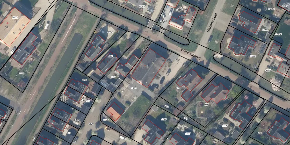 Weteringhout 9 is gelegen op kadastraal perceel HTN04H1030. Deze kadastrale aanduiding is uniek en wordt gebruikt door het Kadaster om eigendomsrechten en andere zakelijke rechten vast te leggen. Het perceel maakt onderdeel uit van de kadastrale gemeente Houten.