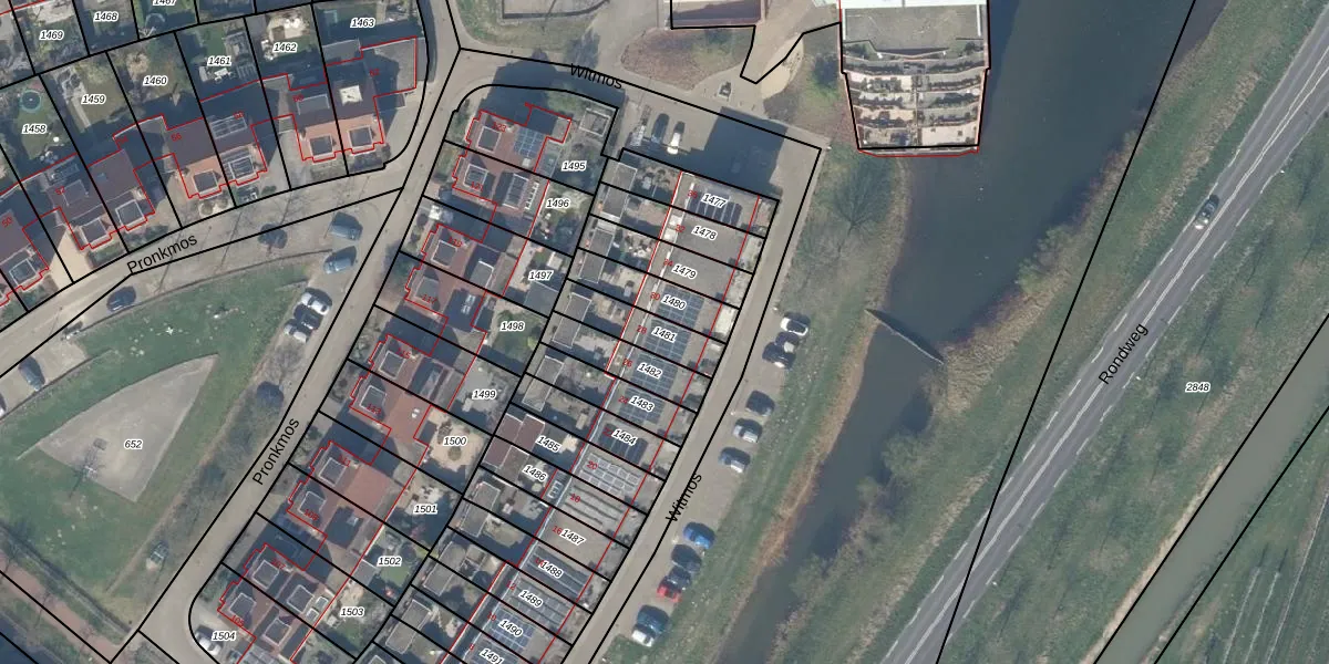 Het perceel waarop het adres ligt is HTN04-B-1481. De afkorting 'HTN04' staat voor kadastrale gemeente Houten. De gemiddelde perceelgrootte in Houten is 2873 m². Dit perceel is kleiner: de perceeloppervlakte bedraagt 141 m². Het grootste perceel in de kadastrale gemeente is 45,3 ha. Het kleinste perceel heeft een oppervlakte van 0 m². Op het perceel bevinden zich geen andere adressen. In de Basisregistratie Kadaster (BRK) werden de grenzen van het perceel geregistreerd op 15-11-2002.