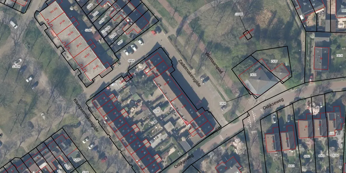 Het perceel waarop Zadelmakersgilde 20 staat heeft een oppervlakte van 3005 m². Dit is een zeer groot perceel. De perceeloppervlakte wordt geregistreerd door het Kadaster. Gedetailleerde informatie over de maten van dit perceel kunt u vinden in het rapport Kadastrale kaart met maatvoering van Zadelmakersgilde 20.
