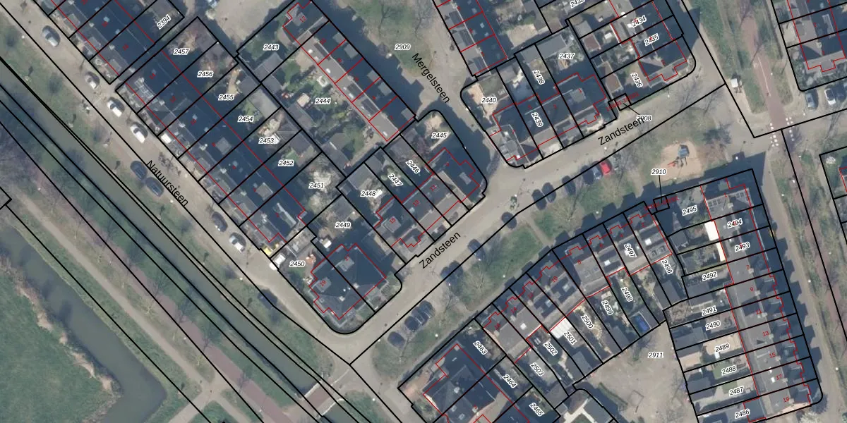 Zandsteen 13 is gelegen op kadastraal perceel HTN04B2447. Deze kadastrale aanduiding is uniek en wordt gebruikt door het Kadaster om eigendomsrechten en andere zakelijke rechten vast te leggen. Het perceel maakt onderdeel uit van de kadastrale gemeente Houten.