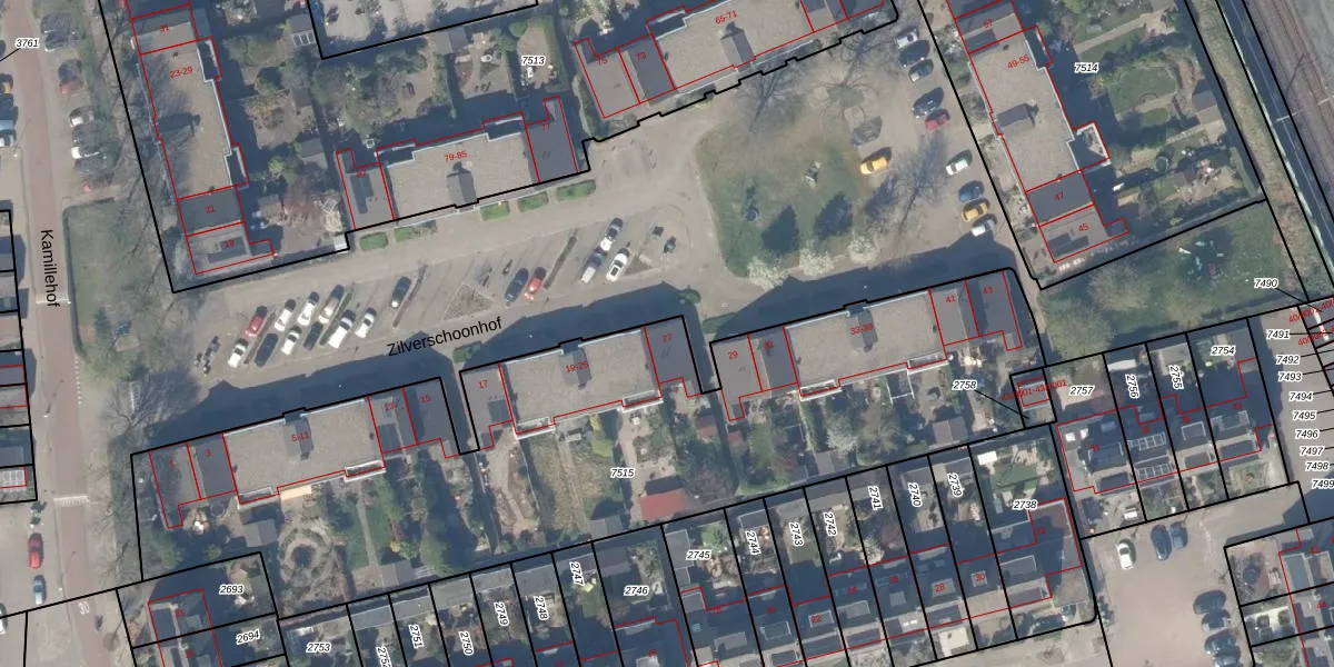 Het perceel waarop Zilverschoonhof 27 staat heeft een oppervlakte van 3515 m². Dit is een zeer groot perceel. De perceeloppervlakte wordt geregistreerd door het Kadaster. Gedetailleerde informatie over de maten van dit perceel kunt u vinden in het rapport Kadastrale kaart met maatvoering van Zilverschoonhof 27.