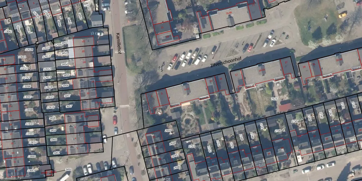 Het perceel waarop Zilverschoonhof 7 staat heeft een oppervlakte van 3515 m². Dit is een zeer groot perceel. De perceeloppervlakte wordt geregistreerd door het Kadaster. Gedetailleerde informatie over de maten van dit perceel kunt u vinden in het rapport Kadastrale kaart met maatvoering van Zilverschoonhof 7.