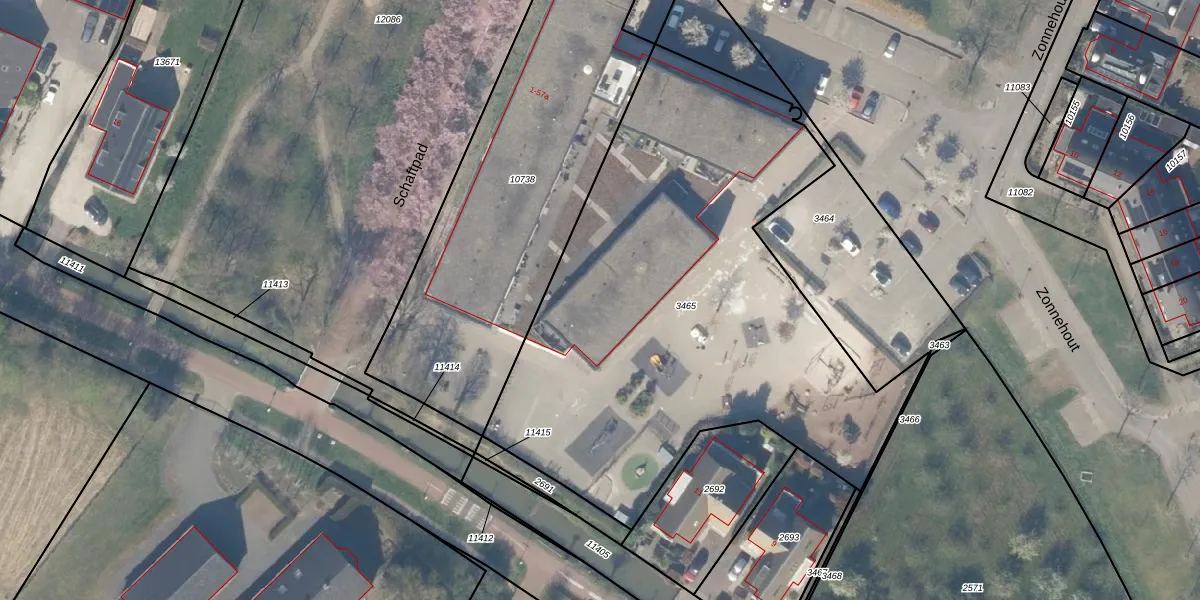 Het perceel waarop Zonnehout 37 staat heeft een oppervlakte van 2942 m². Dit is een zeer groot perceel. De perceeloppervlakte wordt geregistreerd door het Kadaster. Gedetailleerde informatie over de maten van dit perceel kunt u vinden in het rapport Kadastrale kaart met maatvoering van Zonnehout 37.