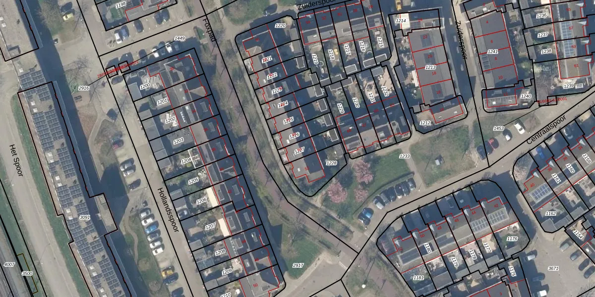 Zuiderspoor 50 is gelegen op kadastraal perceel HTN04B1227. Deze kadastrale aanduiding is uniek en wordt gebruikt door het Kadaster om eigendomsrechten en andere zakelijke rechten vast te leggen. Het perceel maakt onderdeel uit van de kadastrale gemeente Houten.
