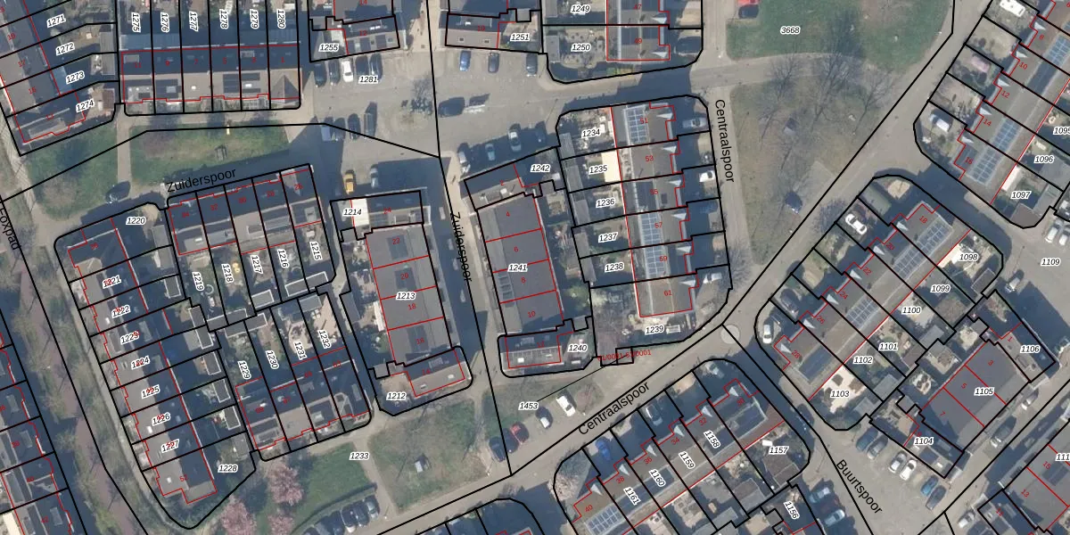 Het perceel waarop Zuiderspoor 8 staat heeft een oppervlakte van 430 m². Dit is een groot perceel. De perceeloppervlakte wordt geregistreerd door het Kadaster. Gedetailleerde informatie over de maten van dit perceel kunt u vinden in het rapport Kadastrale kaart met maatvoering van Zuiderspoor 8.