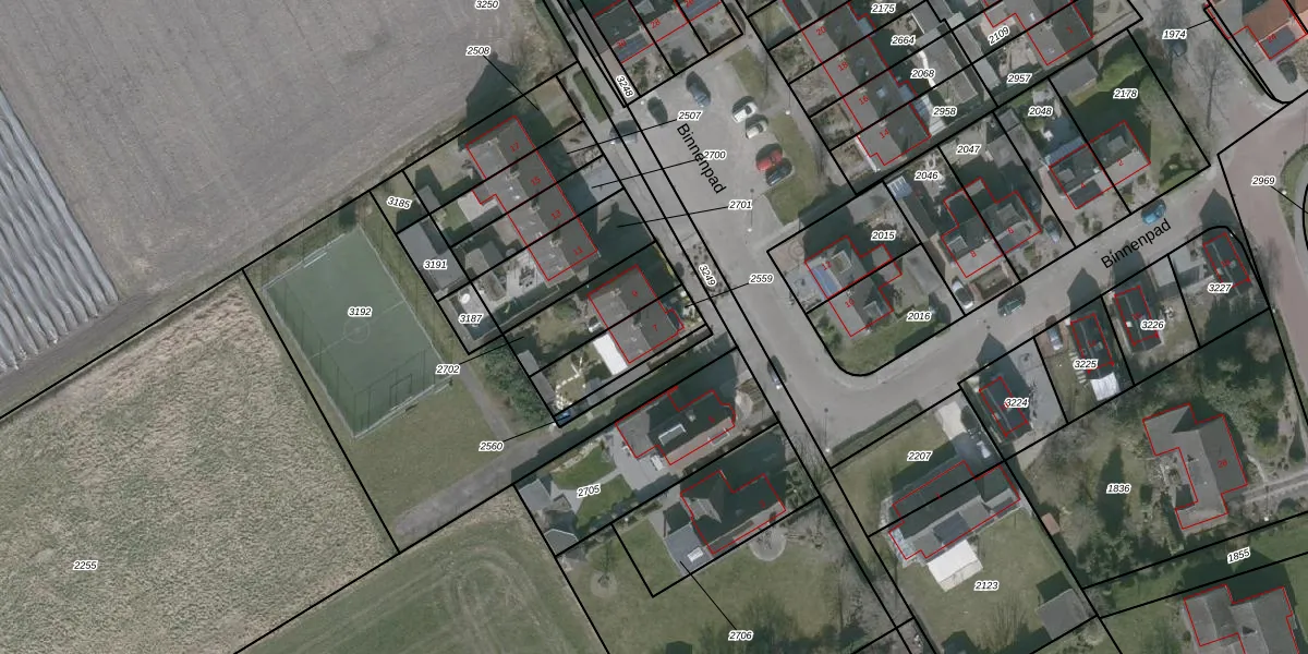 Het perceel waarop Binnenpad 7 staat heeft een oppervlakte van 196 m². Dit is een middelgroot perceel. De perceeloppervlakte wordt geregistreerd door het Kadaster. Gedetailleerde informatie over de maten van dit perceel kunt u vinden in het rapport Kadastrale kaart met maatvoering van Binnenpad 7.