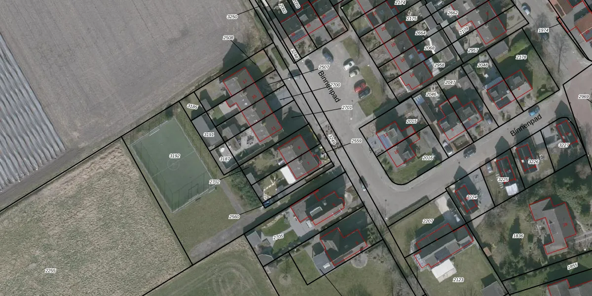 Het perceel waarop Binnenpad 9 staat heeft een oppervlakte van 212 m². Dit is een middelgroot perceel. De perceeloppervlakte wordt geregistreerd door het Kadaster. Gedetailleerde informatie over de maten van dit perceel kunt u vinden in het rapport Kadastrale kaart met maatvoering van Binnenpad 9.