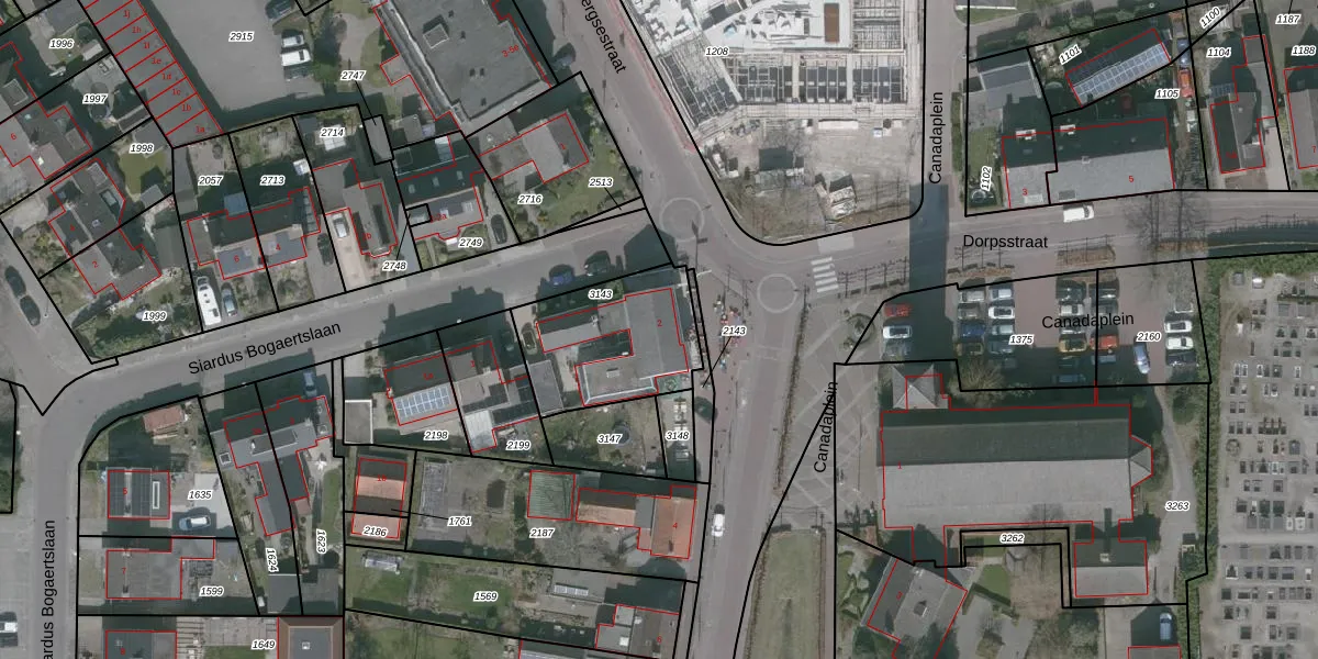 Gebruik de zoekbalk of klik op een perceel voor informatie over de adressen binnen dit perceel.