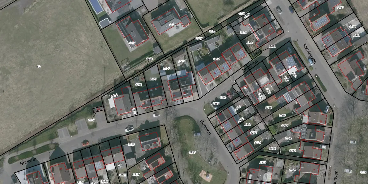 Buntven 38 is gelegen op kadastraal perceel HBG03C2373. Deze kadastrale aanduiding is uniek en wordt gebruikt door het Kadaster om eigendomsrechten en andere zakelijke rechten vast te leggen. Het perceel maakt onderdeel uit van de kadastrale gemeente Huijbergen.
