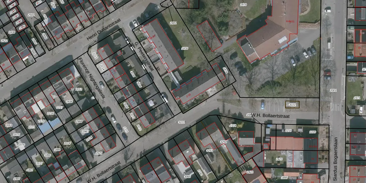 G. Peetersstraat 2 is gelegen op kadastraal perceel HBG03C1876. Deze kadastrale aanduiding is uniek en wordt gebruikt door het Kadaster om eigendomsrechten en andere zakelijke rechten vast te leggen. Het perceel maakt onderdeel uit van de kadastrale gemeente Huijbergen.