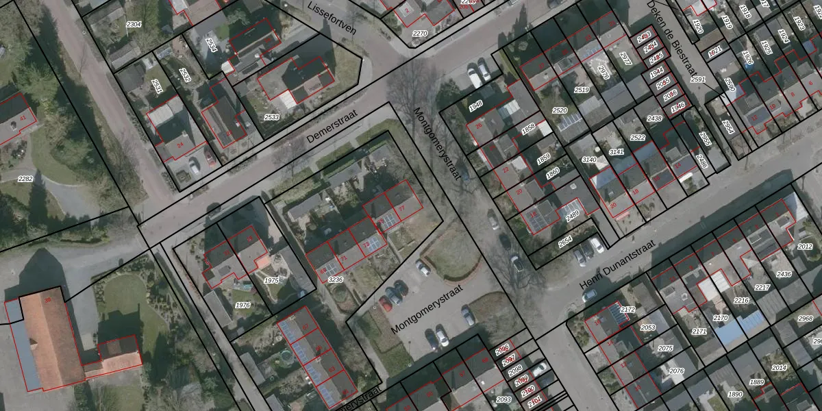 Montgomerystraat 77 is gelegen op kadastraal perceel HBG03C3236. Deze kadastrale aanduiding is uniek en wordt gebruikt door het Kadaster om eigendomsrechten en andere zakelijke rechten vast te leggen. Het perceel maakt onderdeel uit van de kadastrale gemeente Huijbergen.