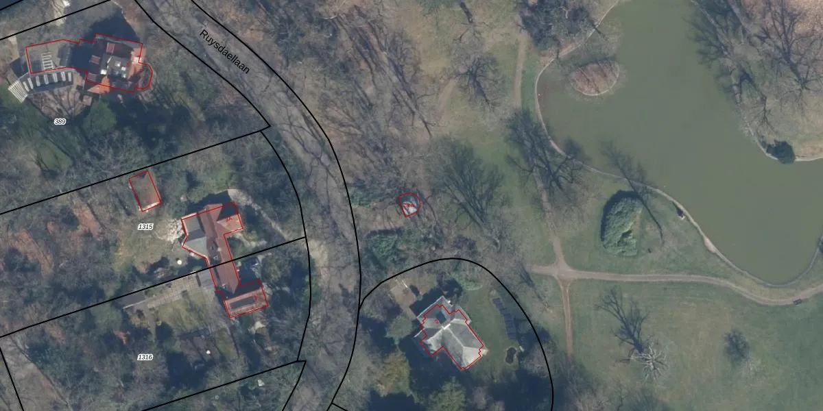 Het perceel waarop Ruysdaellaan 2-kei staat heeft een oppervlakte van 5,4 ha. Dit is een zeer groot perceel. De perceeloppervlakte wordt geregistreerd door het Kadaster. Gedetailleerde informatie over de maten van dit perceel kunt u vinden in het rapport Kadastrale kaart met maatvoering van Ruysdaellaan 2-kei.