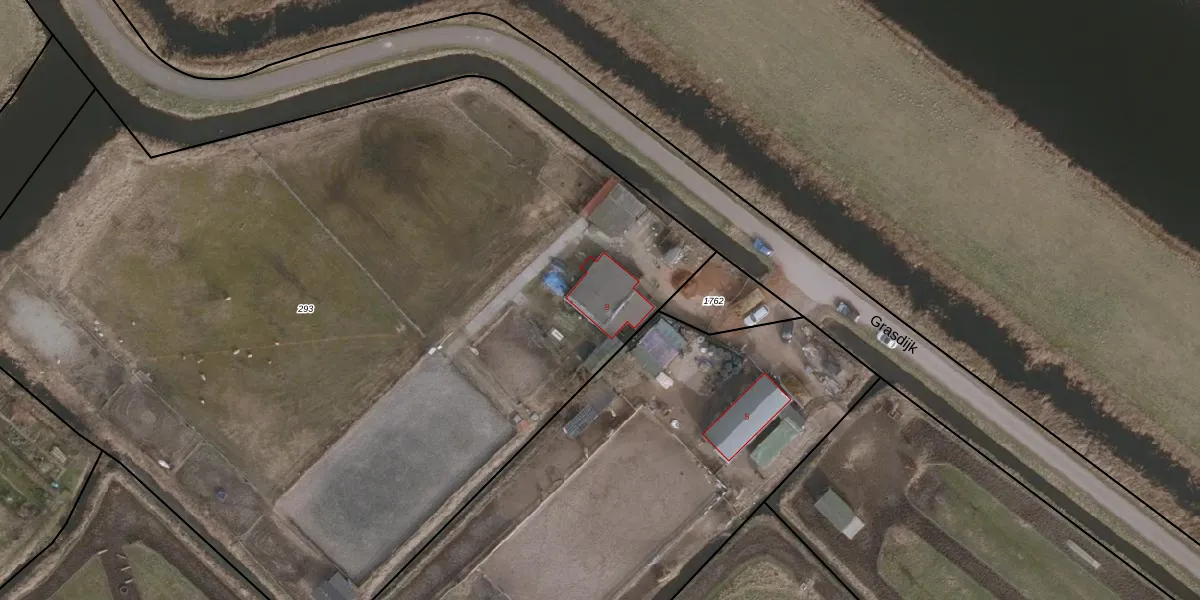 Het perceel waarop Grasdijk 3 staat heeft een oppervlakte van 7080 m². Dit is een zeer groot perceel. De perceeloppervlakte wordt geregistreerd door het Kadaster. Gedetailleerde informatie over de maten van dit perceel kunt u vinden in het rapport Kadastrale kaart met maatvoering van Grasdijk 3.
