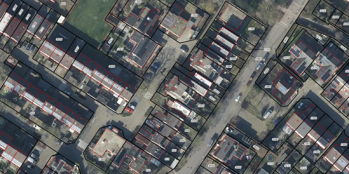 Het perceel waarop Aak 7-a staat heeft een oppervlakte van 355 m². Dit is een groot perceel. De perceeloppervlakte wordt geregistreerd door het Kadaster. Gedetailleerde informatie over de maten van dit perceel kunt u vinden in het rapport Kadastrale kaart met maatvoering van Aak 7-a.