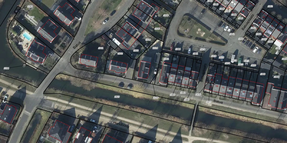 Het perceel waarop Batua 21 staat heeft een oppervlakte van 391 m². Dit is een groot perceel. De perceeloppervlakte wordt geregistreerd door het Kadaster. Gedetailleerde informatie over de maten van dit perceel kunt u vinden in het rapport Kadastrale kaart met maatvoering van Batua 21.