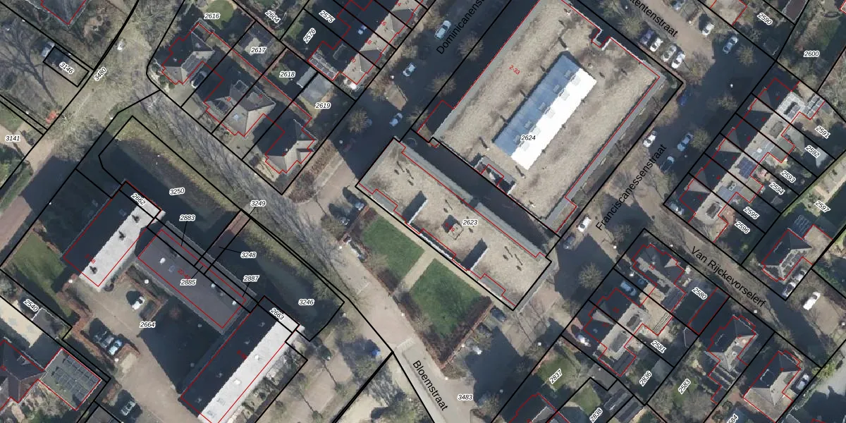Het perceel waarop Bloemstraat 21 staat heeft een oppervlakte van 945 m². Dit is een groot perceel. De perceeloppervlakte wordt geregistreerd door het Kadaster. Gedetailleerde informatie over de maten van dit perceel kunt u vinden in het rapport Kadastrale kaart met maatvoering van Bloemstraat 21.