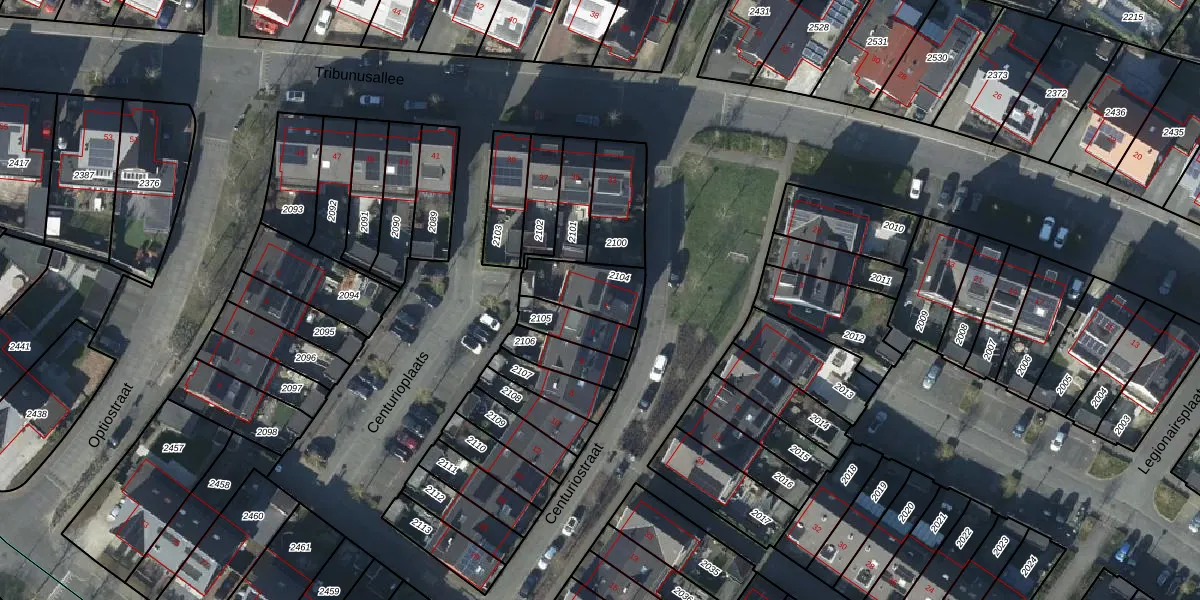 Gebruik de zoekbalk of klik op een perceel voor informatie over de adressen binnen dit perceel.