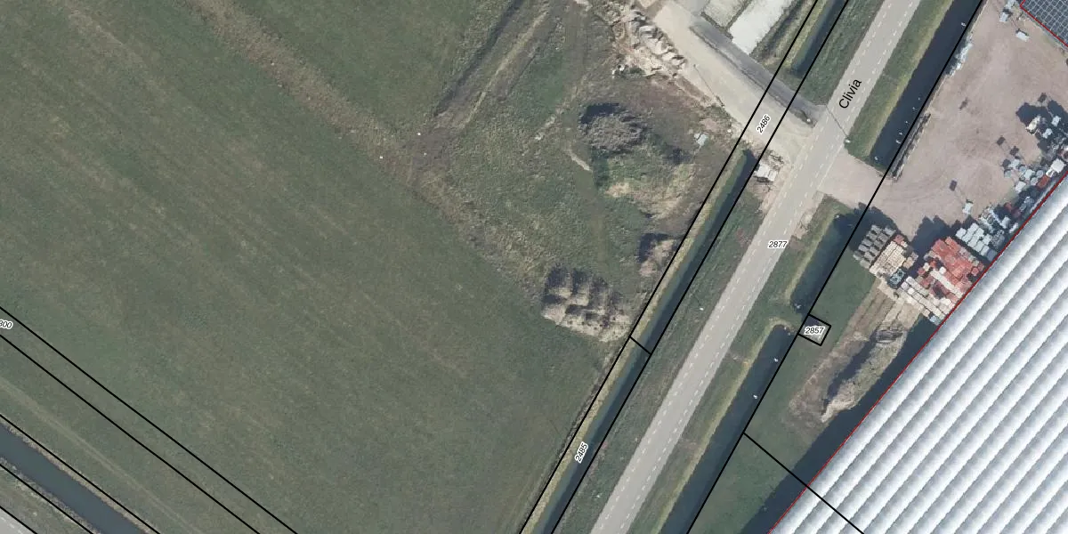 Het perceel waarop Clivia 1-f-10 staat heeft een oppervlakte van 4,0 ha. Dit is een zeer groot perceel. De perceeloppervlakte wordt geregistreerd door het Kadaster. Gedetailleerde informatie over de maten van dit perceel kunt u vinden in het rapport Kadastrale kaart met maatvoering van Clivia 1-f-10.