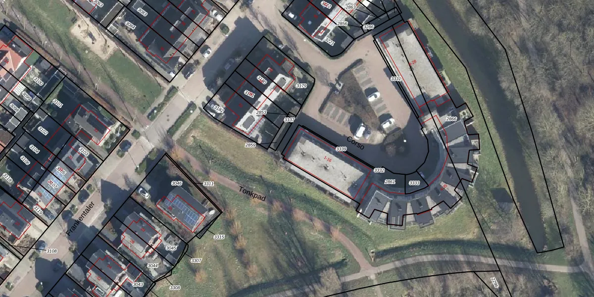 Het perceel waarop Corso 1 staat heeft een oppervlakte van 1085 m². Dit is een zeer groot perceel. De perceeloppervlakte wordt geregistreerd door het Kadaster. Gedetailleerde informatie over de maten van dit perceel kunt u vinden in het rapport Kadastrale kaart met maatvoering van Corso 1.
