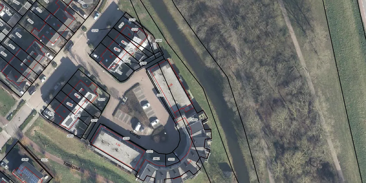Het perceel waarop Corso 25 staat heeft een oppervlakte van 449 m². Dit is een groot perceel. De perceeloppervlakte wordt geregistreerd door het Kadaster. Gedetailleerde informatie over de maten van dit perceel kunt u vinden in het rapport Kadastrale kaart met maatvoering van Corso 25.