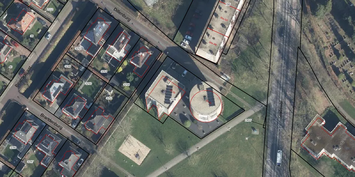 Het perceel waarop Dillenburg 16 staat heeft een oppervlakte van 1423 m². Dit is een zeer groot perceel. De perceeloppervlakte wordt geregistreerd door het Kadaster. Gedetailleerde informatie over de maten van dit perceel kunt u vinden in het rapport Kadastrale kaart met maatvoering van Dillenburg 16.