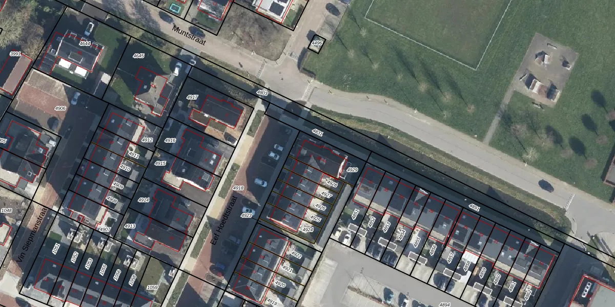Eef Hoedtstraat 1 is gelegen op kadastraal perceel HSN01F4929. Deze kadastrale aanduiding is uniek en wordt gebruikt door het Kadaster om eigendomsrechten en andere zakelijke rechten vast te leggen. Het perceel maakt onderdeel uit van de kadastrale gemeente Huissen.