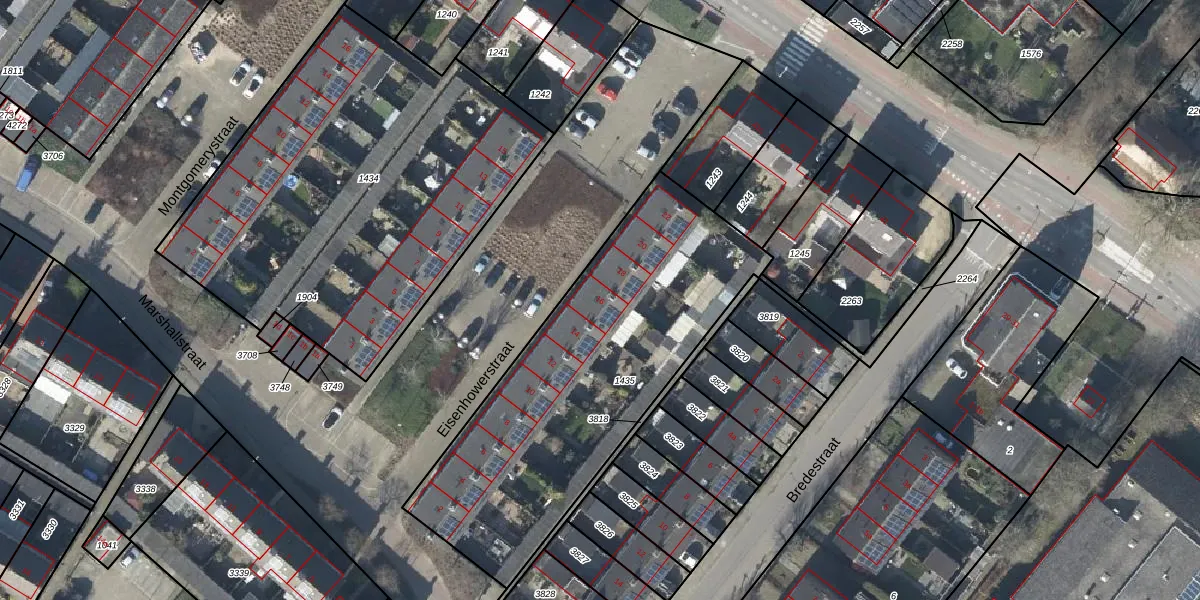 Het perceel waarop Eisenhowerstraat 16 staat heeft een oppervlakte van 1590 m². Dit is een zeer groot perceel. De perceeloppervlakte wordt geregistreerd door het Kadaster. Gedetailleerde informatie over de maten van dit perceel kunt u vinden in het rapport Kadastrale kaart met maatvoering van Eisenhowerstraat 16.