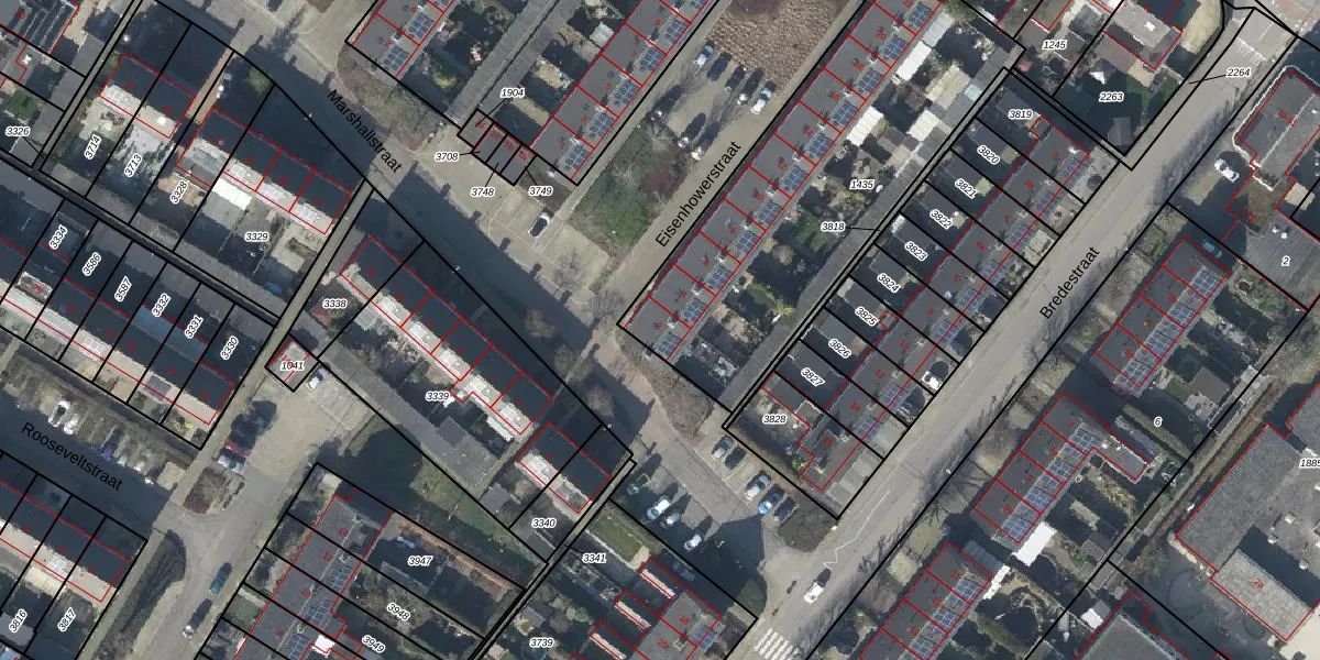 Het perceel waarop Eisenhowerstraat 2 staat heeft een oppervlakte van 1590 m². Dit is een zeer groot perceel. De perceeloppervlakte wordt geregistreerd door het Kadaster. Gedetailleerde informatie over de maten van dit perceel kunt u vinden in het rapport Kadastrale kaart met maatvoering van Eisenhowerstraat 2.