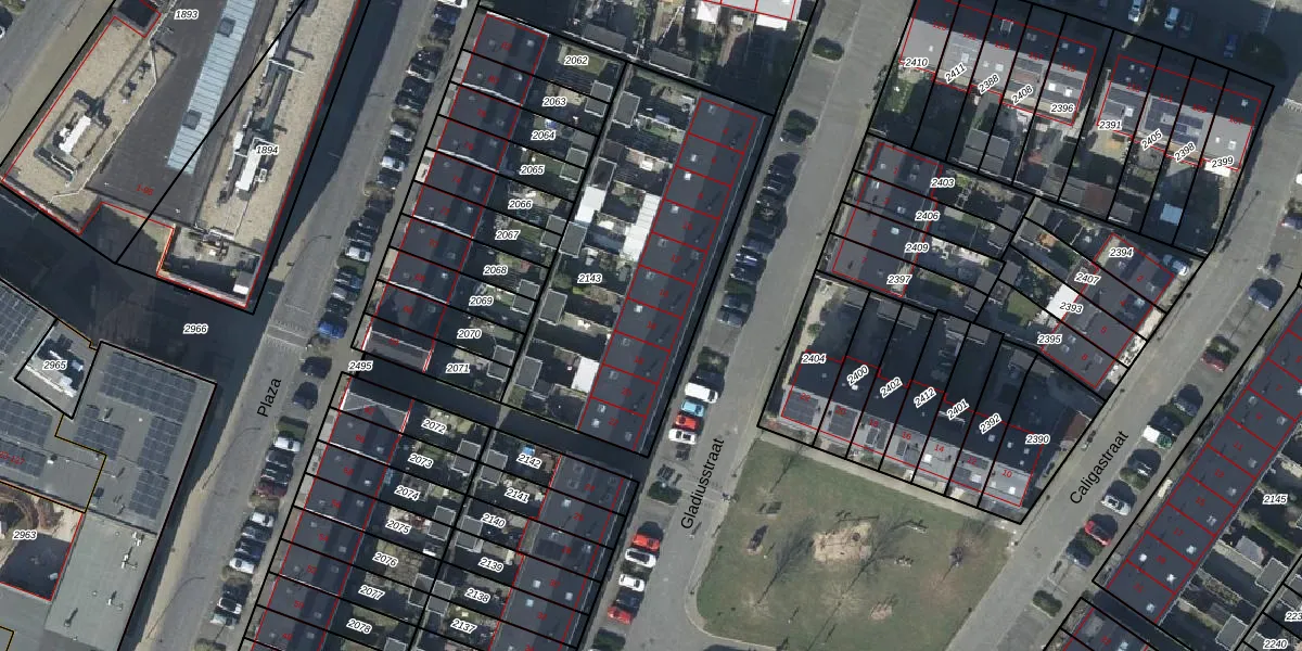 Gladiusstraat 16 is gelegen op kadastraal perceel HSN01G2143. Deze kadastrale aanduiding is uniek en wordt gebruikt door het Kadaster om eigendomsrechten en andere zakelijke rechten vast te leggen. Het perceel maakt onderdeel uit van de kadastrale gemeente Huissen.