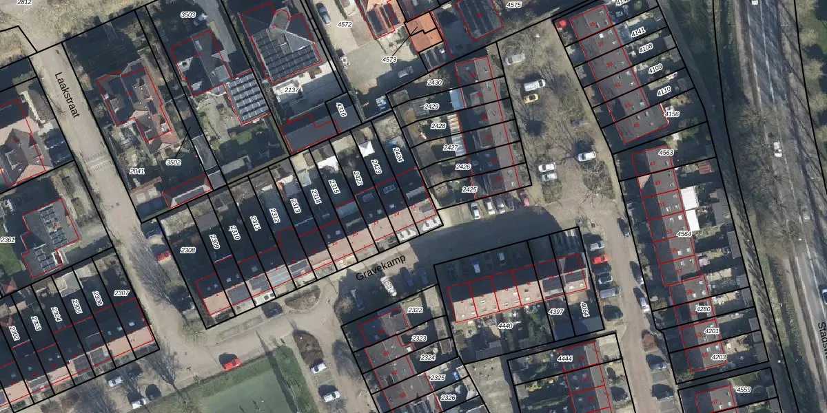 Gebruik de zoekbalk of klik op een perceel voor informatie over de adressen binnen dit perceel.