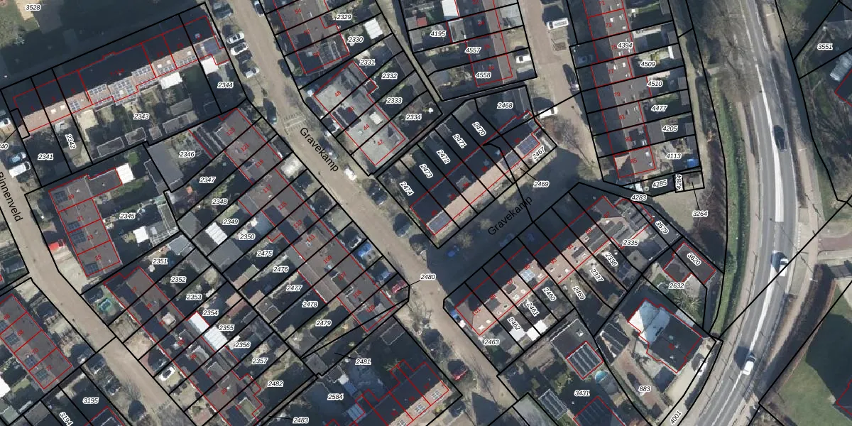 Gebruik de zoekbalk of klik op een perceel voor informatie over de adressen binnen dit perceel.