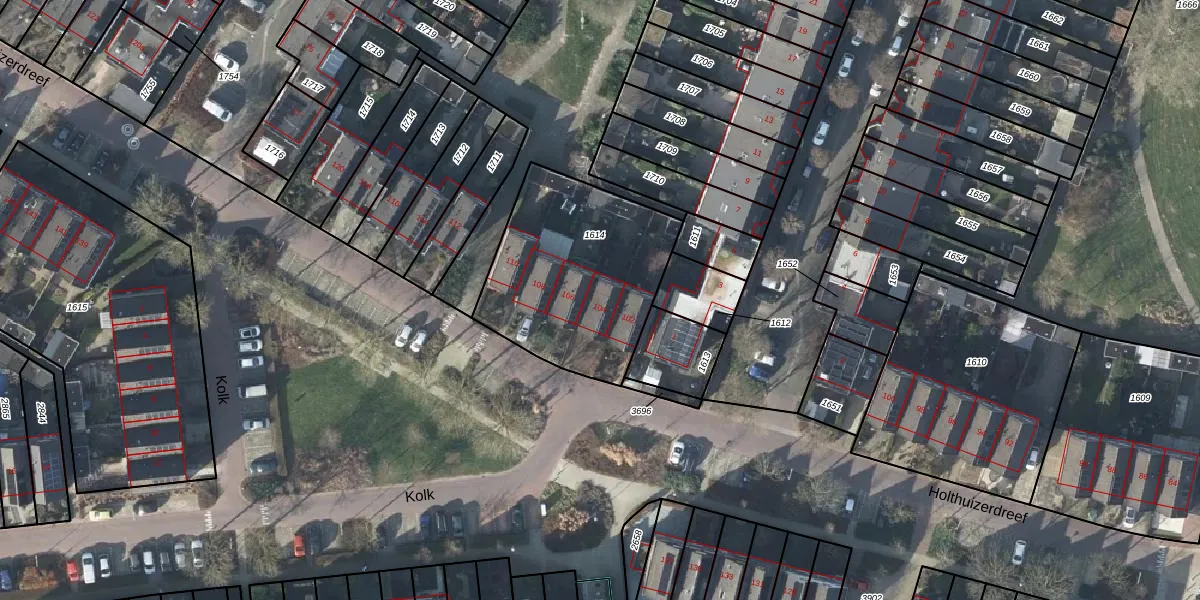 Holthuizerdreef 104 is gelegen op kadastraal perceel HSN01H1614. Deze kadastrale aanduiding is uniek en wordt gebruikt door het Kadaster om eigendomsrechten en andere zakelijke rechten vast te leggen. Het perceel maakt onderdeel uit van de kadastrale gemeente Huissen.