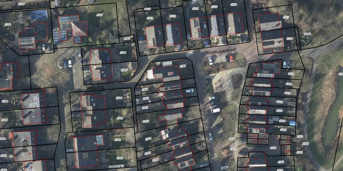 Holthuizerdreef 14 is gelegen op kadastraal perceel HSN01H1550. Deze kadastrale aanduiding is uniek en wordt gebruikt door het Kadaster om eigendomsrechten en andere zakelijke rechten vast te leggen. Het perceel maakt onderdeel uit van de kadastrale gemeente Huissen.