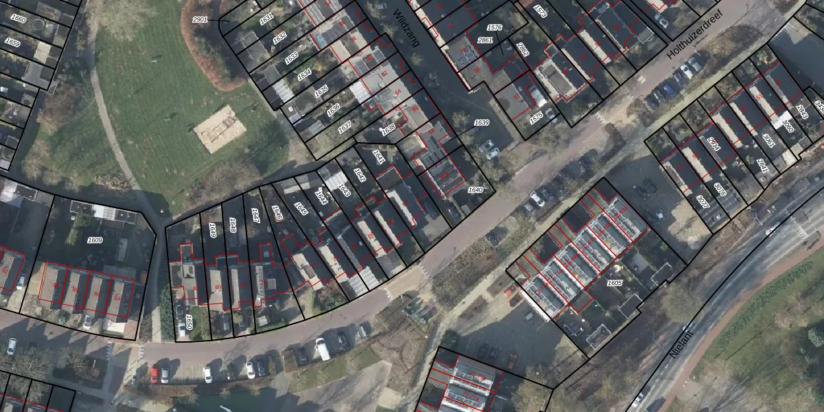 Holthuizerdreef 64 is gelegen op kadastraal perceel HSN01H1641. Deze kadastrale aanduiding is uniek en wordt gebruikt door het Kadaster om eigendomsrechten en andere zakelijke rechten vast te leggen. Het perceel maakt onderdeel uit van de kadastrale gemeente Huissen.