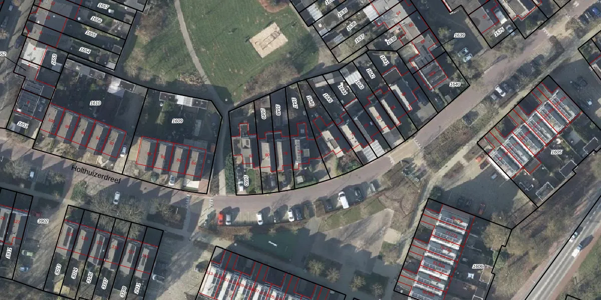 Gebruik de zoekbalk of klik op een perceel voor informatie over de adressen binnen dit perceel.