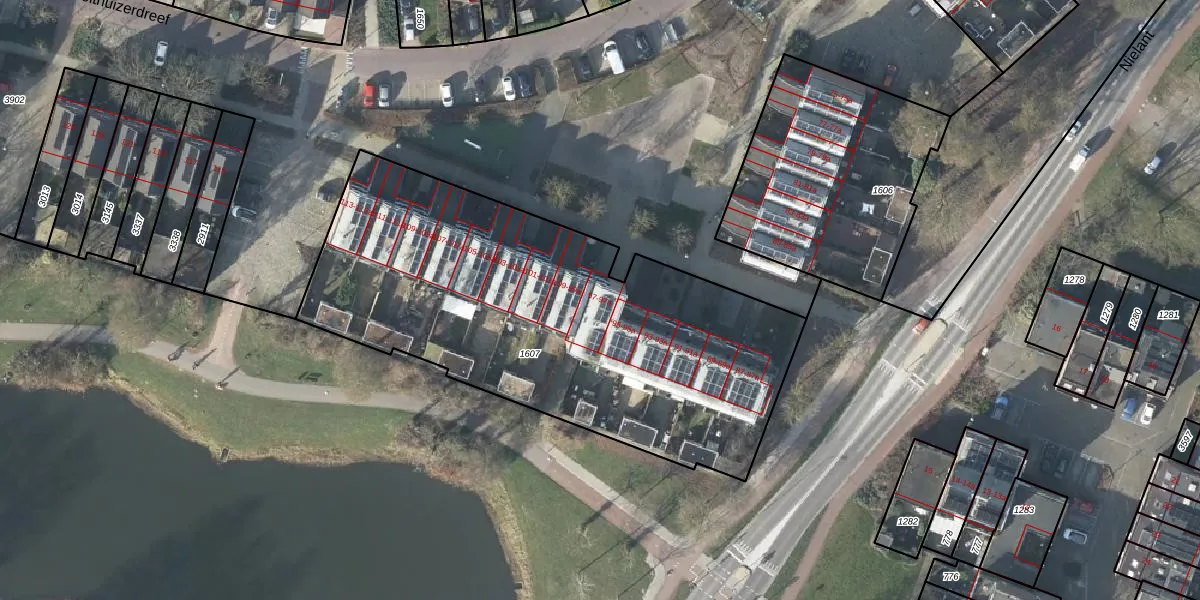 Het perceel waarop het adres ligt is HSN01-H-1607. De afkorting 'HSN01' staat voor kadastrale gemeente Huissen. Het perceel is met 2369 m² relatief groot. Het gemiddelde ligt in de kadastrale gemeente Huissen op 1396,85 m². Het kleinste perceel in de kadastrale gemeente is 0 m² groot. De grootste perceeloppervlakte is 30,0 ha. Er zijn 28 adressen aanwezig op het perceel. De huidige grenzen van het perceel zijn digitaal in de Basisregistratie Kadaster (BRK) geregistreerd op 29-07-2002.