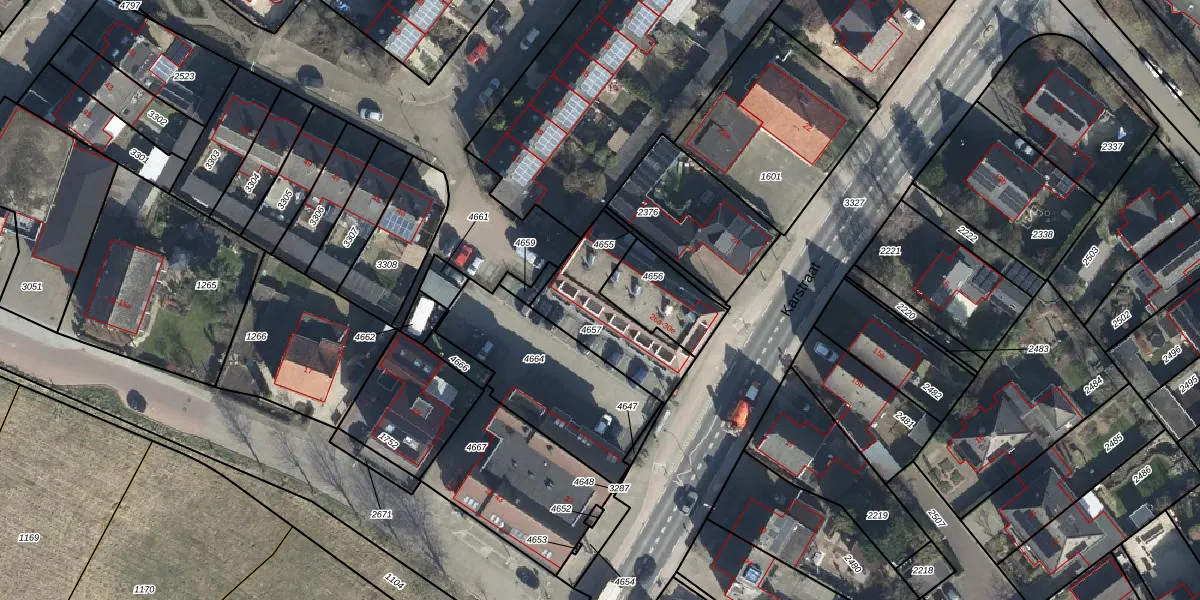 Het perceel waarop Karstraat 30-d staat heeft een oppervlakte van 327 m². Dit is een groot perceel. De perceeloppervlakte wordt geregistreerd door het Kadaster. Gedetailleerde informatie over de maten van dit perceel kunt u vinden in het rapport Kadastrale kaart met maatvoering van Karstraat 30-d.
