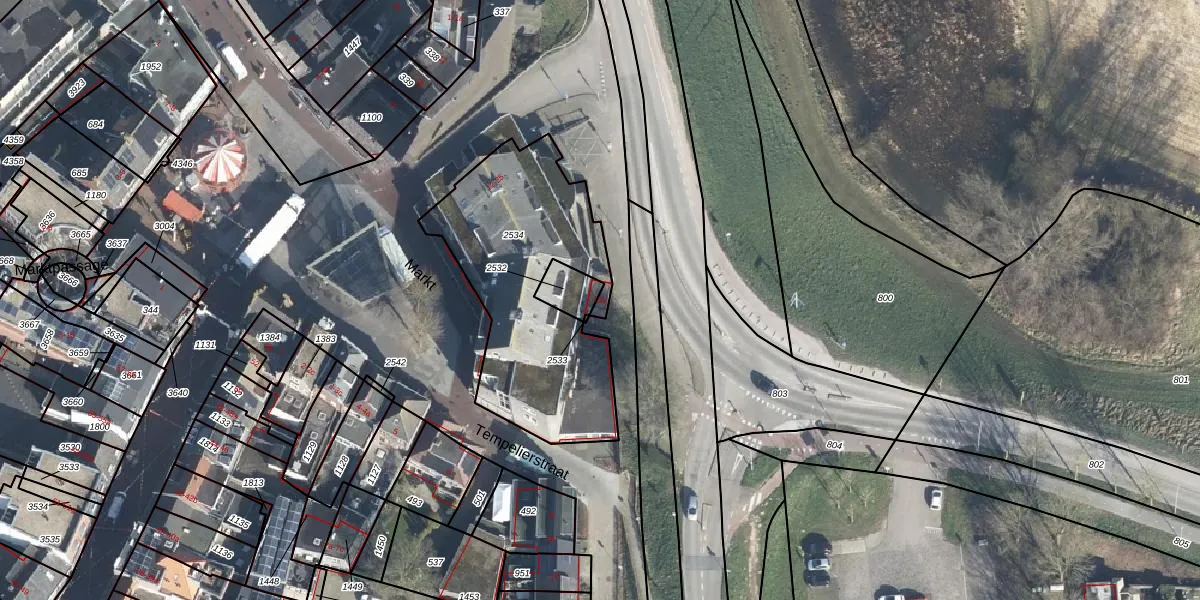 Het perceel waarop Markt 13-a staat heeft een oppervlakte van 985 m². Dit is een groot perceel. De perceeloppervlakte wordt geregistreerd door het Kadaster. Gedetailleerde informatie over de maten van dit perceel kunt u vinden in het rapport Kadastrale kaart met maatvoering van Markt 13-a.