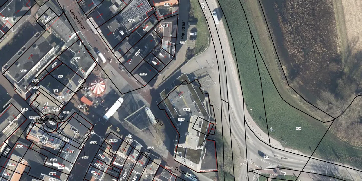 Het perceel waarop Markt 13-b staat heeft een oppervlakte van 985 m². Dit is een groot perceel. De perceeloppervlakte wordt geregistreerd door het Kadaster. Gedetailleerde informatie over de maten van dit perceel kunt u vinden in het rapport Kadastrale kaart met maatvoering van Markt 13-b.