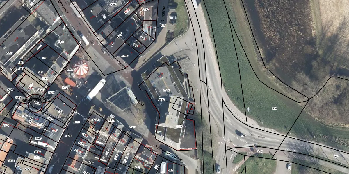 Het perceel waarop Markt 15 staat heeft een oppervlakte van 985 m². Dit is een groot perceel. De perceeloppervlakte wordt geregistreerd door het Kadaster. Gedetailleerde informatie over de maten van dit perceel kunt u vinden in het rapport Kadastrale kaart met maatvoering van Markt 15.