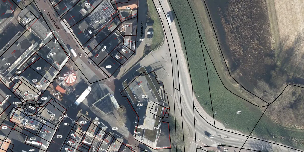 Het perceel waarop Markt 16-a staat heeft een oppervlakte van 985 m². Dit is een groot perceel. De perceeloppervlakte wordt geregistreerd door het Kadaster. Gedetailleerde informatie over de maten van dit perceel kunt u vinden in het rapport Kadastrale kaart met maatvoering van Markt 16-a.