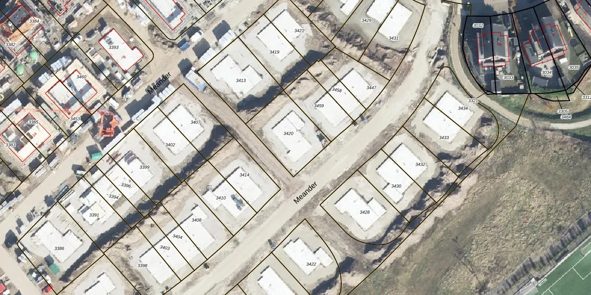 Het perceel waarop Meander 35 staat heeft een oppervlakte van 416 m². Dit is een groot perceel. De perceeloppervlakte wordt geregistreerd door het Kadaster. Gedetailleerde informatie over de maten van dit perceel kunt u vinden in het rapport Kadastrale kaart met maatvoering van Meander 35.