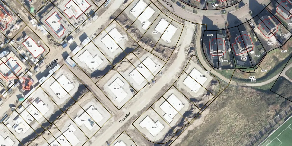 Het perceel waarop Meander 39 staat heeft een oppervlakte van 134 m². Dit is een middelgroot perceel. De perceeloppervlakte wordt geregistreerd door het Kadaster. Gedetailleerde informatie over de maten van dit perceel kunt u vinden in het rapport Kadastrale kaart met maatvoering van Meander 39.
