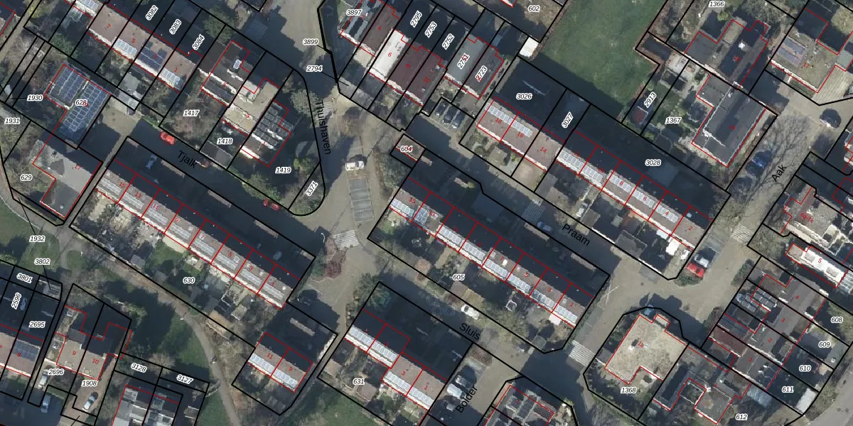 Het perceel waarop Praam 13 staat heeft een oppervlakte van 1266 m². Dit is een zeer groot perceel. De perceeloppervlakte wordt geregistreerd door het Kadaster. Gedetailleerde informatie over de maten van dit perceel kunt u vinden in het rapport Kadastrale kaart met maatvoering van Praam 13.