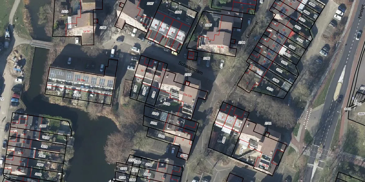 Het perceel waarop Schaapsdam 13-a staat heeft een oppervlakte van 429 m². Dit is een groot perceel. De perceeloppervlakte wordt geregistreerd door het Kadaster. Gedetailleerde informatie over de maten van dit perceel kunt u vinden in het rapport Kadastrale kaart met maatvoering van Schaapsdam 13-a.