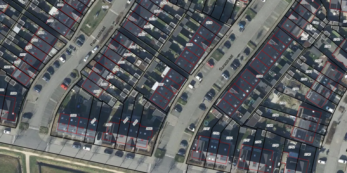 Surastraat 16 is gelegen op kadastraal perceel HSN01G2597. Deze kadastrale aanduiding is uniek en wordt gebruikt door het Kadaster om eigendomsrechten en andere zakelijke rechten vast te leggen. Het perceel maakt onderdeel uit van de kadastrale gemeente Huissen.