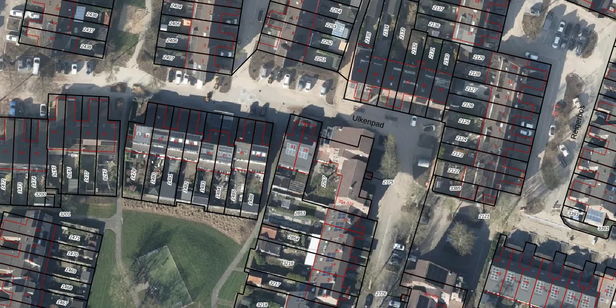 Het perceel waarop Ulkenpad 39 staat heeft een oppervlakte van 653 m². Dit is een groot perceel. De perceeloppervlakte wordt geregistreerd door het Kadaster. Gedetailleerde informatie over de maten van dit perceel kunt u vinden in het rapport Kadastrale kaart met maatvoering van Ulkenpad 39.
