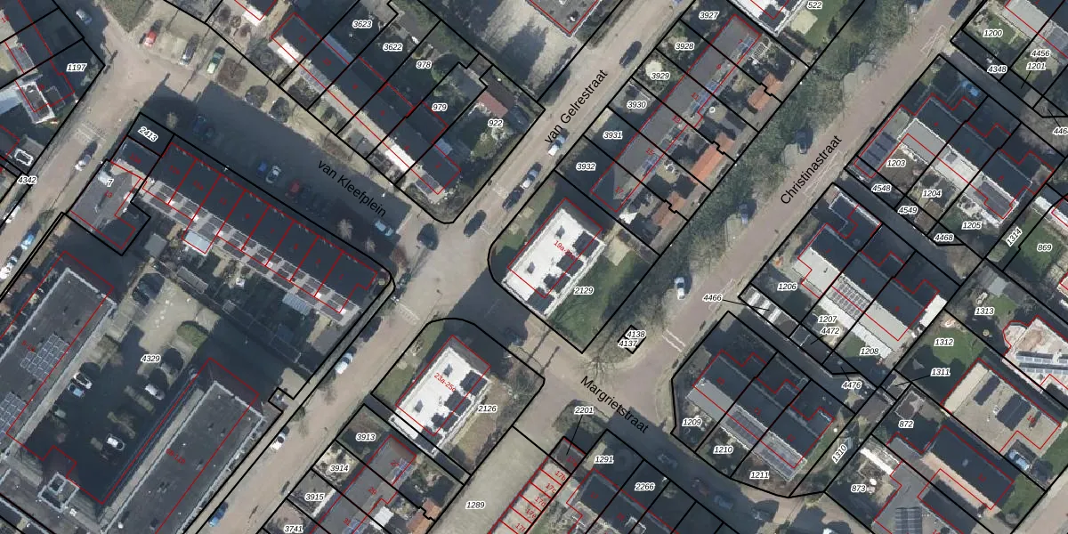 Het perceel waarop van Gelrestraat 21-c staat heeft een oppervlakte van 590 m². Dit is een groot perceel. De perceeloppervlakte wordt geregistreerd door het Kadaster. Gedetailleerde informatie over de maten van dit perceel kunt u vinden in het rapport Kadastrale kaart met maatvoering van van Gelrestraat 21-c.