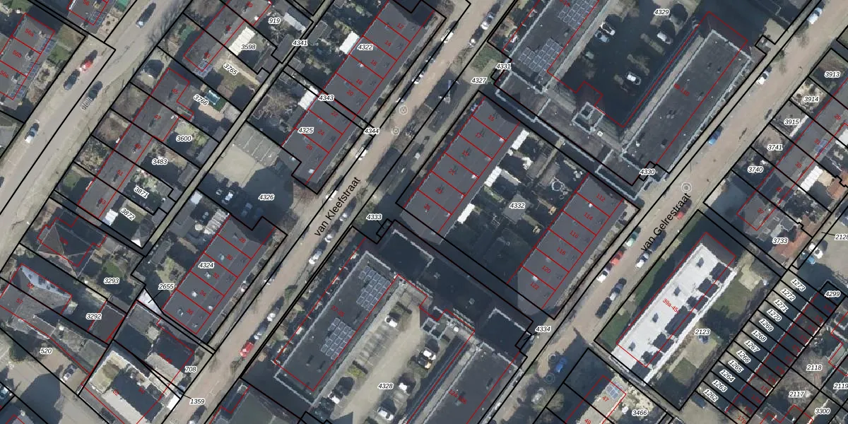 Het perceel waarop van Kleefstraat 25 staat heeft een oppervlakte van 1534 m². Dit is een zeer groot perceel. De perceeloppervlakte wordt geregistreerd door het Kadaster. Gedetailleerde informatie over de maten van dit perceel kunt u vinden in het rapport Kadastrale kaart met maatvoering van van Kleefstraat 25.